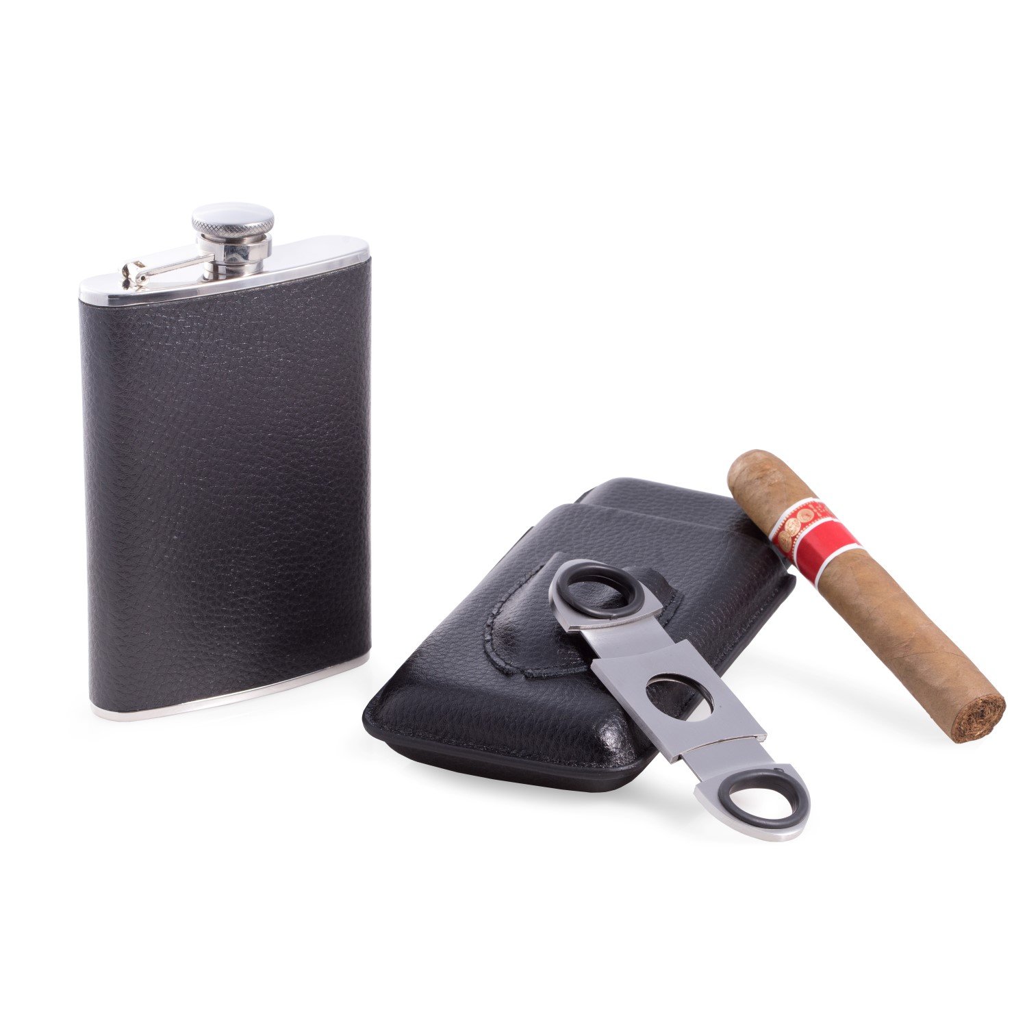 And finally, this is a leather flask with cigar case that also comes with a cigar cutter: