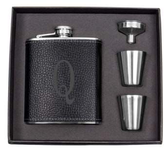 This monogrammed version (which is nice) comes packaged with two stainless shot glasses:
